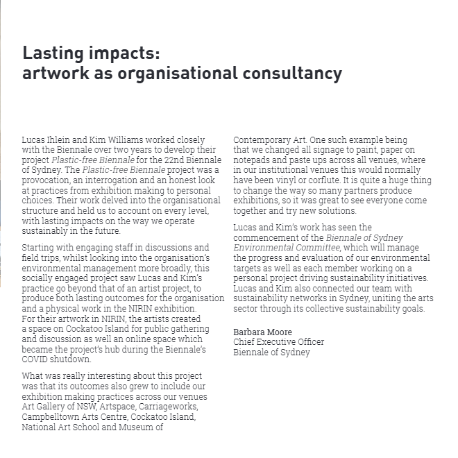Plastic-free Biennale (NIRIN: 2020 Biennale of Sydney)